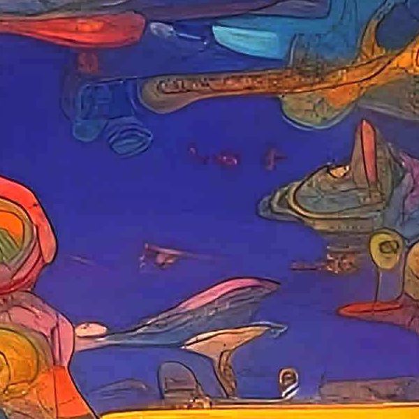これらの画像は通常の AI アートとはちがう独自の方法を使って作っています. AI アートは AI にプロンプト (または呪文) とよばれる英語の記述をあたえて作画した画像ですが, Stable Diffusion,DALL・E 2,Midjourney などの AI プログラムによって 2022 年に爆発的に普及しました. AI アートで望む画像を作るために通常は比較的細かい指示を与えます. しかしデイシンではおもに 1〜4 語程度の短いことばや造語を Stable Diffusion XL 1.0 (1024) を使用している OpenArt,NightCafe などのウェブサイトで使用して,そのプログラムがもつ知識をいかして自由に (ジェネラティブに,創発的に) 画像をつくらせています. コントラストの調整等はしていますが,描きなおさせたり加筆したりするようなことはしていません.