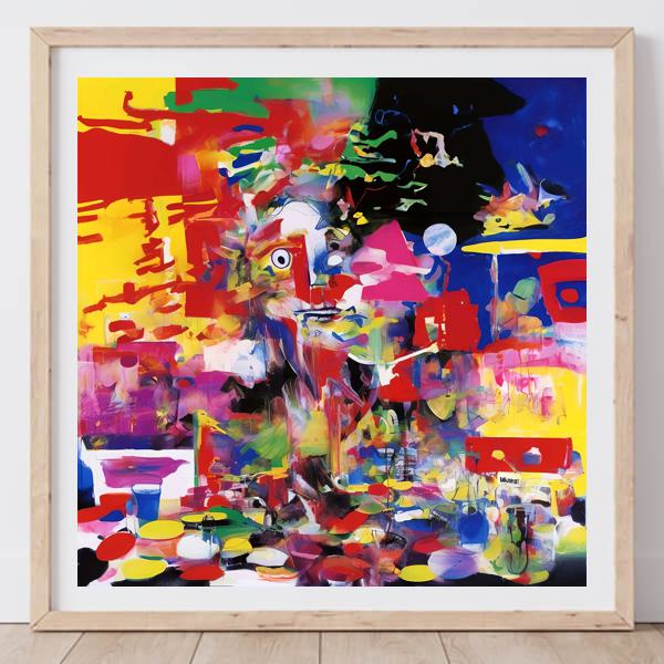 制作者と AI (AI アート作成用のプログラム Stable Diffusion XL 1.0 (1024)) とからなるアートユニット カナブストラクド によるアート画像です.そのプログラムに「Kanabstracd absurdism Picasso」ということば (prompt) をあたえて創造させました. 負のプロンプトとして「Picasso bows」を指定しています.