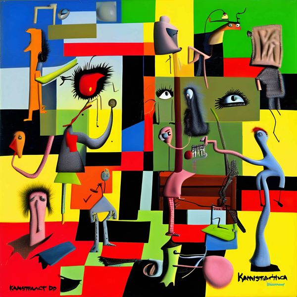 制作者と AI (AI アート作成用のプログラム Stable Diffusion XL 1.0 (1024)) とからなるアートユニット カナブストラクド によるアート画像です.そのプログラムに「Kanabstracd contemporary surrealism」ということば (prompt) をあたえて創造させました. 負のプロンプトとして「surrealis」を指定しています.