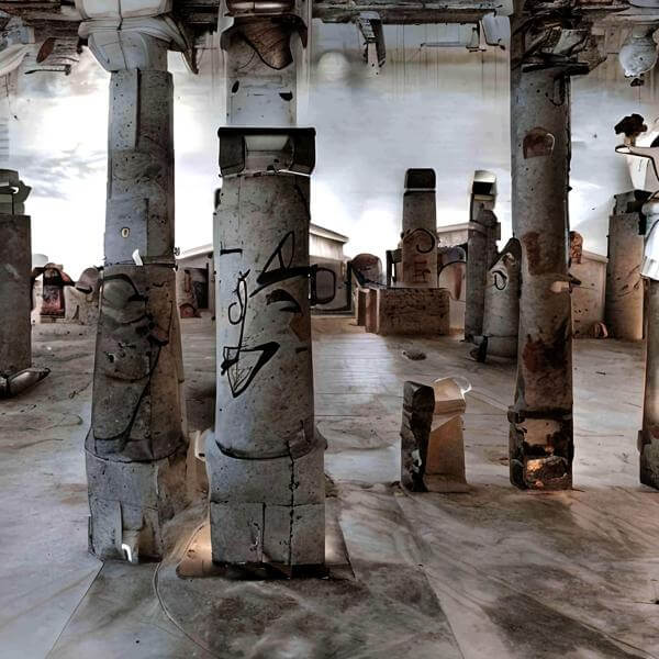 これらの画像は通常の AI アートとはちがう独自の方法を使って作っています. AI アートは AI にプロンプト (または呪文) とよばれる英語の記述をあたえて作画した画像ですが, Stable Diffusion,DALL・E 2,Midjourney などの AI プログラムによって 2022 年に爆発的に普及しました. AI アートで望む画像を作るために通常は比較的細かい指示を与えます. しかしデイシンではおもに 1〜4 語程度の短いことばや造語を Stable Diffusion 2.1 (768) を使用している OpenArt,NightCafe などのウェブサイトで使用して,そのプログラムがもつ知識をいかして自由に (ジェネラティブに,創発的に) 画像をつくらせています. コントラストの調整等はしていますが,描きなおさせたり加筆したりするようなことはしていません.