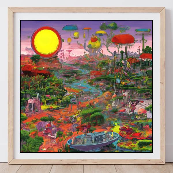 In AI art, the images generated are usually quite rough—about the size of an A6 print (roughly 500–1000 pixels on each side). To make them suitable for presentation, I use a technique called super-resolution, which increases the resolution 4–8 times higher than the original, adding finer detail. However, please note that the resolution of the product image shown above is about the same as the original and has not been upscaled.