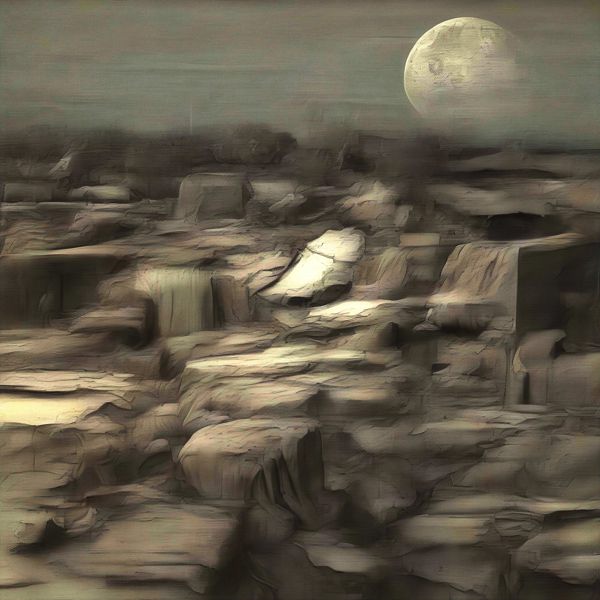 これらの画像は通常の AI アートとはちがう独自の方法を使って作っています. AI アートは AI にプロンプト (または呪文) とよばれる英語の記述をあたえて作画した画像ですが, Stable Diffusion,DALL・E 2,Midjourney などの AI プログラムによって 2022 年に爆発的に普及しました. AI アートで望む画像を作るために通常は比較的細かい指示を与えます. しかしデイシンではおもに 1〜4 語程度の短いことばや造語を Stable Diffusion XL 1.0 (1024) を使用している OpenArt,NightCafe などのウェブサイトで使用して,そのプログラムがもつ知識をいかして自由に (ジェネラティブに,創発的に) 画像をつくらせています. コントラストの調整等はしていますが,描きなおさせたり加筆したりするようなことはしていません.