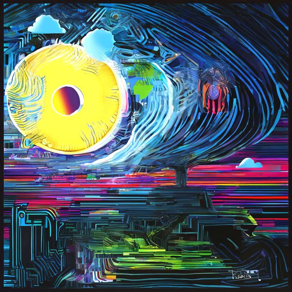 これらの画像は通常の AI アートとはちがう独自の方法を使って作っています. AI アートは AI にプロンプト (または呪文) とよばれる英語の記述をあたえて作画した画像ですが, Stable Diffusion,DALL・E 2,Midjourney などの AI プログラムによって 2022 年に爆発的に普及しました. AI アートで望む画像を作るために通常は比較的細かい指示を与えます. しかしデイシンではおもに 1〜4 語程度の短いことばや造語を Stable Diffusion XL 1.0 (1024) を使用している OpenArt,NightCafe などのウェブサイトで使用して,そのプログラムがもつ知識をいかして自由に (ジェネラティブに,創発的に) 画像をつくらせています. コントラストの調整等はしていますが,描きなおさせたり加筆したりするようなことはしていません.