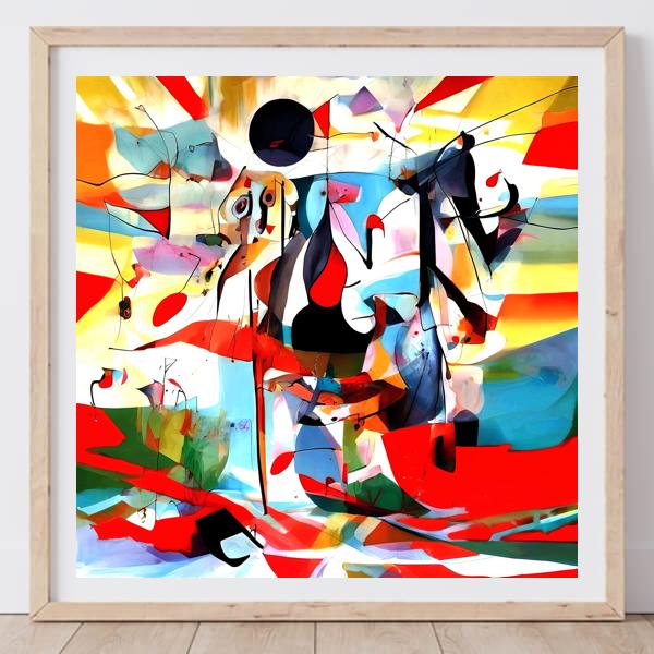 制作者と AI (AI アート作成用のプログラム Stable Diffusion XL 1.0 (1024)) とからなるアートユニット カナブストラクド によるアート画像です.そのプログラムに「Kanabstracd surrealism Miro」ということば (prompt) をあたえて創造させました. 負のプロンプトとして「Miro」を指定しています.