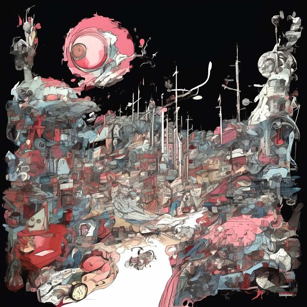 制作者と AI (AI アート作成用のプログラム Stable Diffusion XL 1.0 (1024)) とからなるアートユニット カナブストラクド によるアート画像です.そのプログラムに「Kanabstracd absurdism」ということば (prompt) をあたえて創造させました. 負のプロンプトとして「mesh」を指定しています.