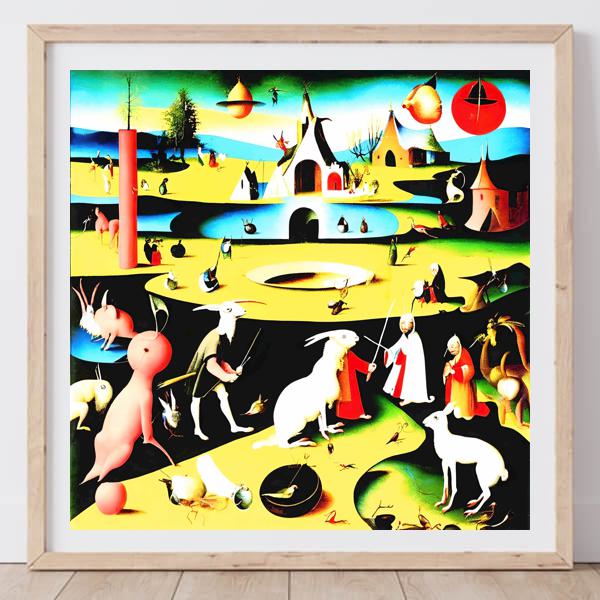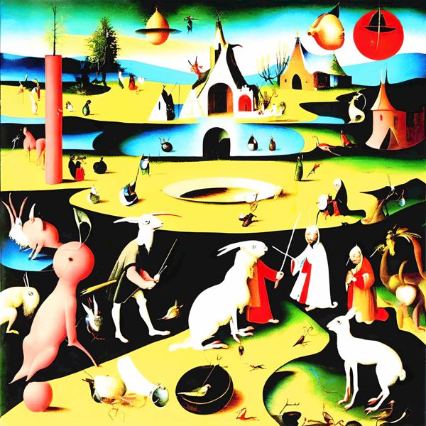 This image was created by ‘Kanabstracd,’ an art unit formed by the creator and the AI (Stable Diffusion XL 1.0 (1024), a program for creating AI artworks). I gave the program the word ‘Kanabstracd Hieronymus_Bosch’ as a prompt and let it create. Also “absurdism ” was used as the negative prompt.