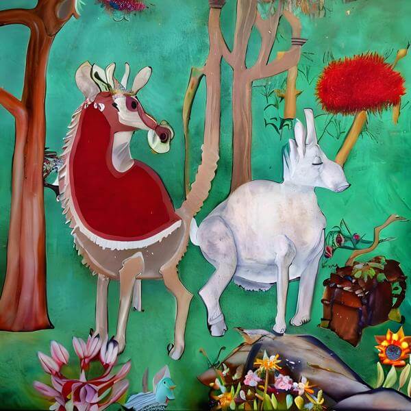 これらの画像は通常の AI アートとはちがう独自の方法を使って作っています. AI アートは AI にプロンプト (または呪文) とよばれる英語の記述をあたえて作画した画像ですが, Stable Diffusion,DALL・E 2,Midjourney などの AI プログラムによって 2022 年に爆発的に普及しました. AI アートで望む画像を作るために通常は比較的細かい指示を与えます. しかしデイシンではおもに 1〜4 語程度の短いことばや造語を を使用している OpenArt,NightCafe などのウェブサイトで使用して,そのプログラムがもつ知識をいかして自由に (ジェネラティブに,創発的に) 画像をつくらせています. コントラストの調整等はしていますが,描きなおさせたり加筆したりするようなことはしていません.
