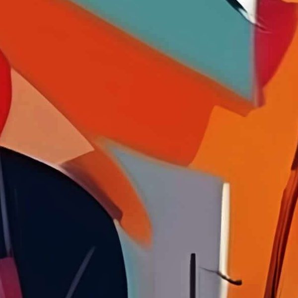 本作は幾何学的な面と流れるような線が幾重にも重なり,鮮やかな赤・青・橙・緑の対比が強烈な印象を与える抽象画です. 大小の円や角が交差してリズムを生み,塗りの濃淡や透明感が層構造を示唆します. 太い輪郭線と繊細な線描が奥行きと躍動を作り,視線は自然に画面内を巡りながら静と動の均衡を感じさせます.