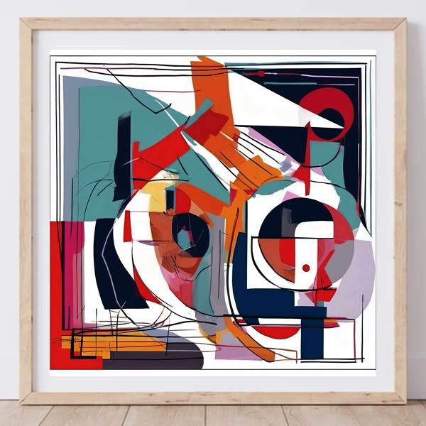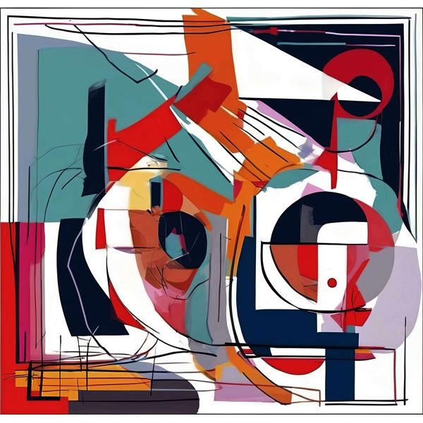 表現の系譜としてはワシリー・カンディンスキーの色彩の精神性,ソニア・ドローネーの円形と色面の扱い,ピエト・モンドリアンの構成主義的秩序,さらにキュビスムやフェルナン・レジェの断片的・機械的造形の影響がうかがえます. バウハウス的なデザイン志向も現代的に解釈されており,歴史的な抽象表現の要素を取り込みつつ独自のリズムと調和で再構築された作品です.